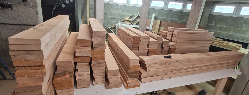Artisan du bois, je pars de panneaux en chêne massif achetés dans les scieries locales. Ce bois est éco-certifié PEFC et classé dans la catégorie QBA1 (qualité ébénisterie).